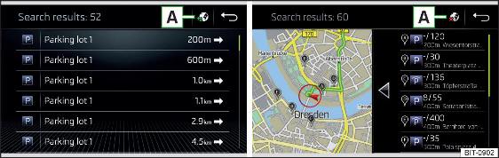 Elenco dei parcheggi cercati: nei dati di navigazione / online
